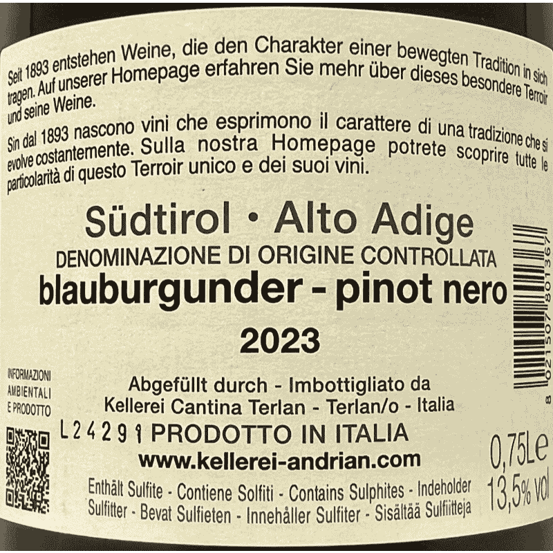 Pinot Noir Alto Adige DOC 2023 - Cantina Andrian